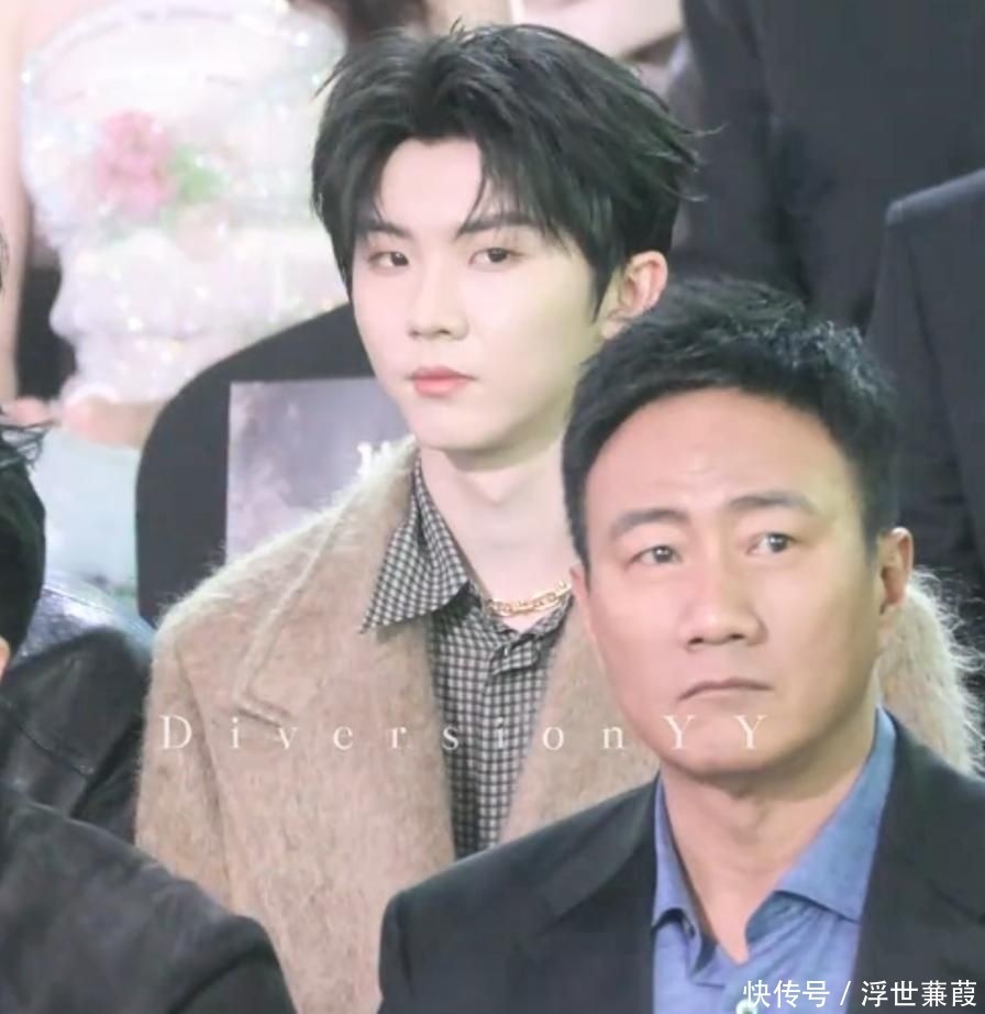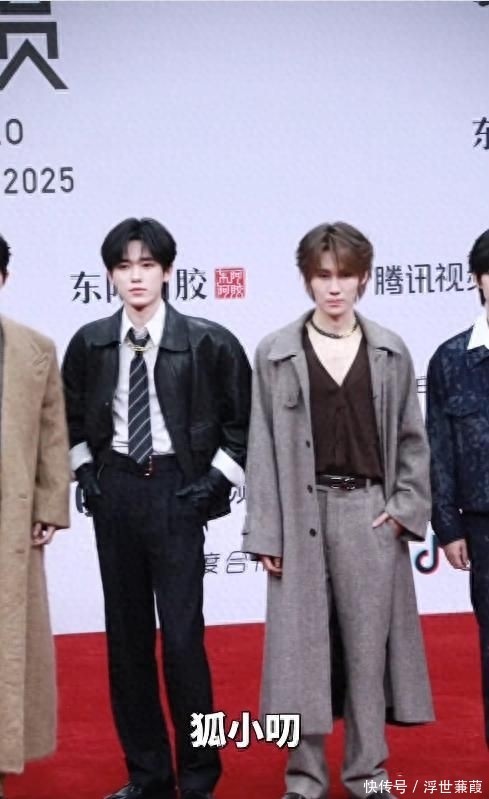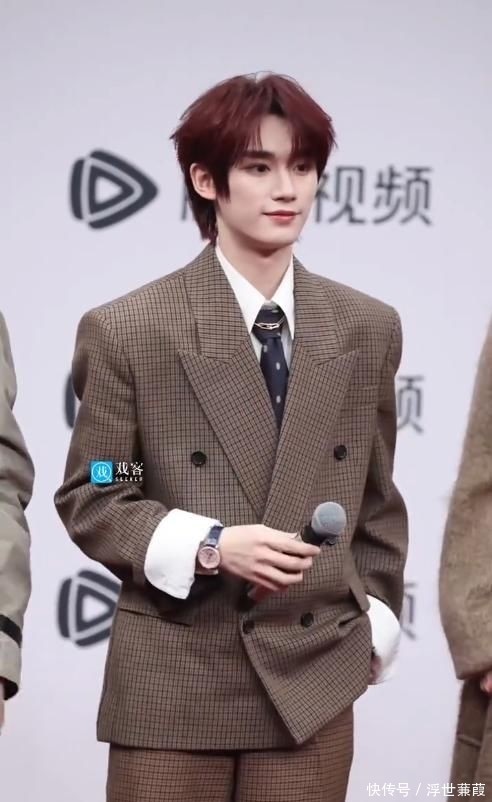 丁程鑫的整体造型也呈现出惊人的一致性。他选择了一套驼棕色正装,系着经典款领带,发型依旧是当下流行的齐刘海三七分,露出部分额头,宛如标准化模板输出。